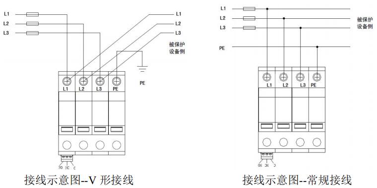 1模塊結(jié)構(gòu)浪涌保護器接線圖如安裝接線圖所示: