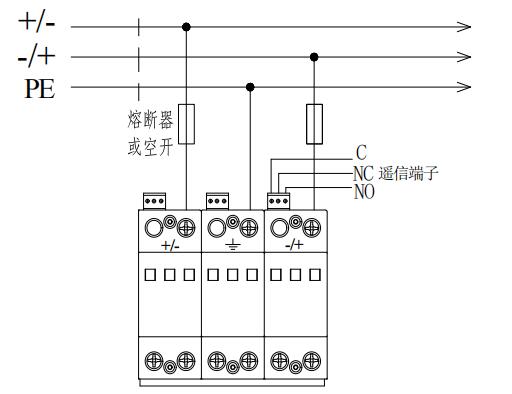 3 防雷器前端應(yīng)串聯(lián)合適的熔斷器或空開。