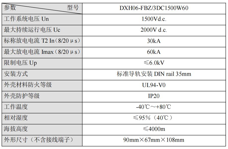 DXH06-FBZ/3DC1500W60         2000Vdc 30-60kA        中普光伏電源防雷器