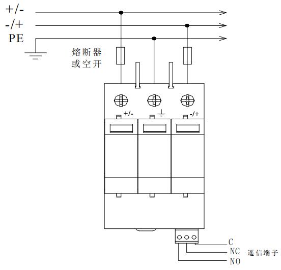 6.2 防雷器前端應串聯(lián)合適的熔斷器或空開。