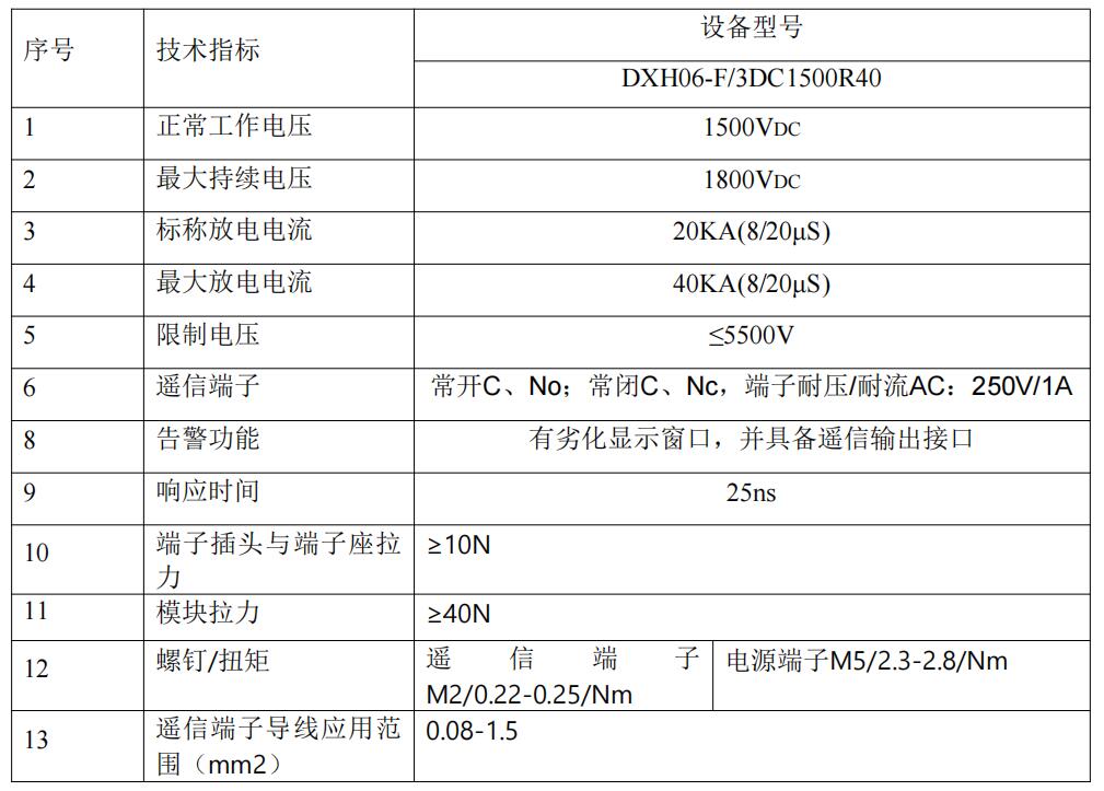 DXH06-F/3DC1500R40是帶有遙信報警裝置、帶有隔離板的直流防雷模塊。產(chǎn)品主要用于光伏發(fā)電設備的防雷以及操作過電壓的保護。