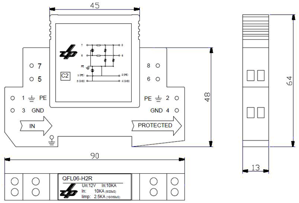 • QFL06-H2R系列          13mm四線12/24V          中普信號防雷器